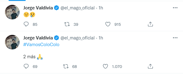 En algún momento se ilusionó con la remontada, especialmente en el que los separaron a dos minutos del final del compromiso pero luego de eso publicó dos caras de tristeza que relata la tristeza de los hinchas de Colo Colo que ahora deberán conformarse con ir a la Copa Sudamericana.