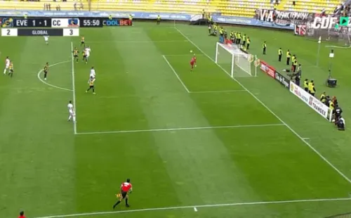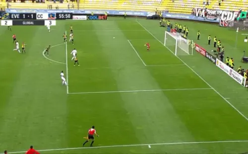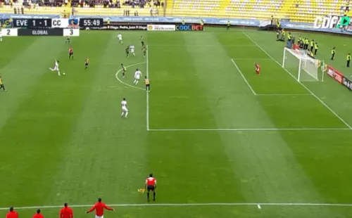El joven jugador disparó con un soberbio derechazo tras una buena jugada de Pablo Mouche, quien cedió el balón y Villanueva al tener tiempo y espacio le pegó para mandarla a guardar en el ángulo del portero de Everton, Cristian Campestrini.