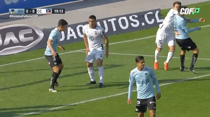 El argentino forcejeó con el defensor de O’Higgins, Tomás Alarcón, y le pegó un fuerte manotazo que fue advertido por el juez de línea.