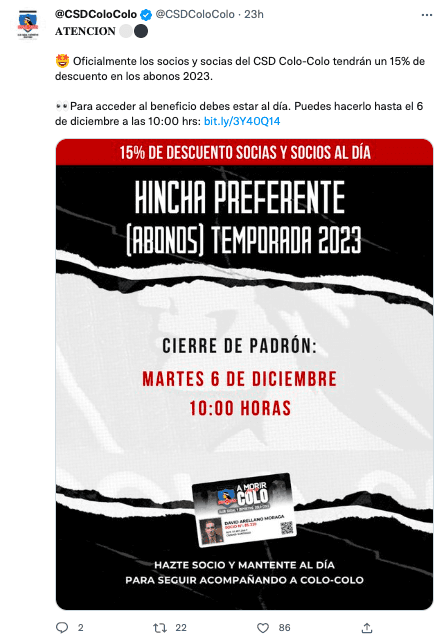 Según se informó, los socios colocolinos que estén al día en sus cuotas reciben un 15% de descuento en el valor total de su abono para acompañar al equipo en busca del bicampeonato y la Copa Libertadores.