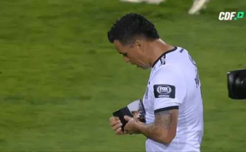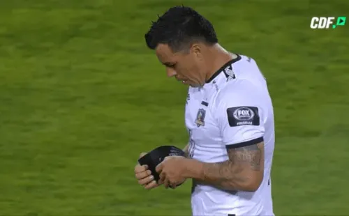 El atacante de 39 años se sacó la jineta de capitán al término de la primera mitad. La besó y no la usaría más pues estaba diseñada especialmente con la cantidad de goles que tiene en su cuenta.