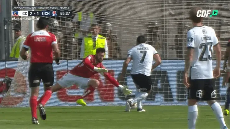 Esteban Paredes es el máximo goleador de la Primera División en la historia y lo consigue en el duelo mayor de nuestro fútbol. El delantero de Colo Colo aprovechó una internación por la izquierda para recibir en solitario el balón y batir a Fernando de Paul al minuto 65.