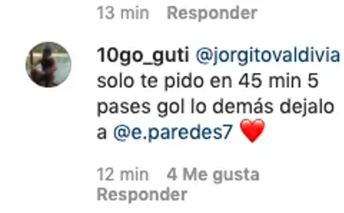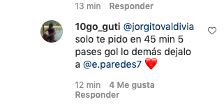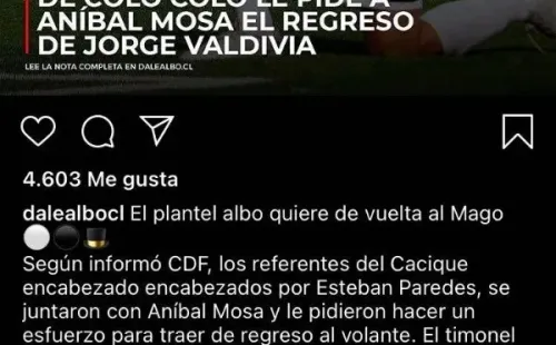 ¿Qué fue lo que pasó? En la cuenta de Instagram de DaleAlbo informaron sobre la opción que tiene Valdivia para volver al cacique. Ahí, un hincha le escribió directo al 10, pidiéndole que en 45 minutos le meta cinco pases gol al Tanque.