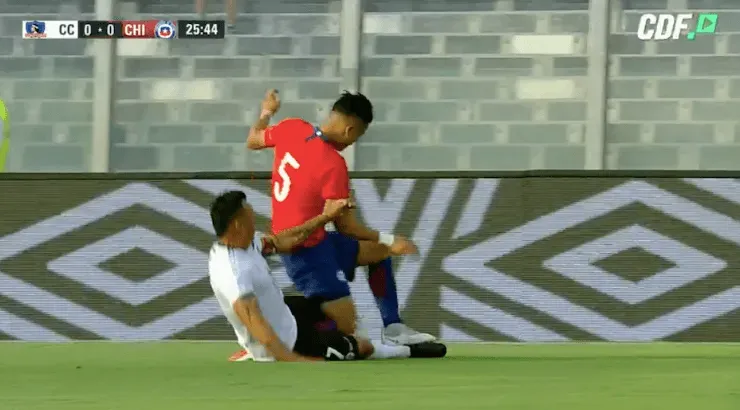 Y es que el histórico goleador se barrió llegando muy tarde y con el de Palestino en posesión total del balón. Lo agarró mal abajo pero, afortunadamente, no pasó a mayores.