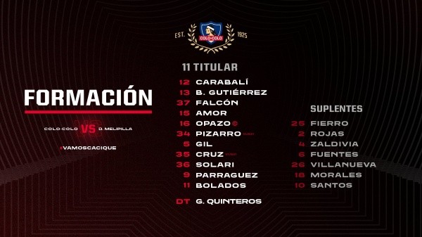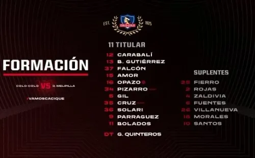 Revisa las formaciones de Colo Colo y Deportes Melipilla