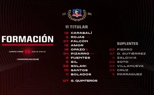 Revisa la formación de Colo Colo ante Curicó Unido