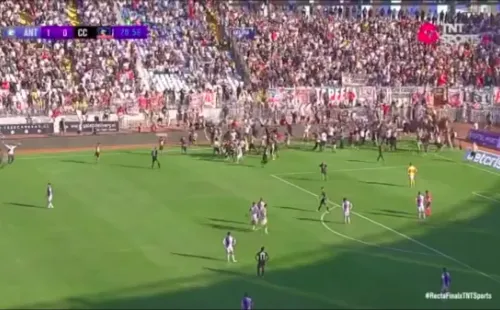 Invasión al campo en gol de Colo Colo que estaba anulado.