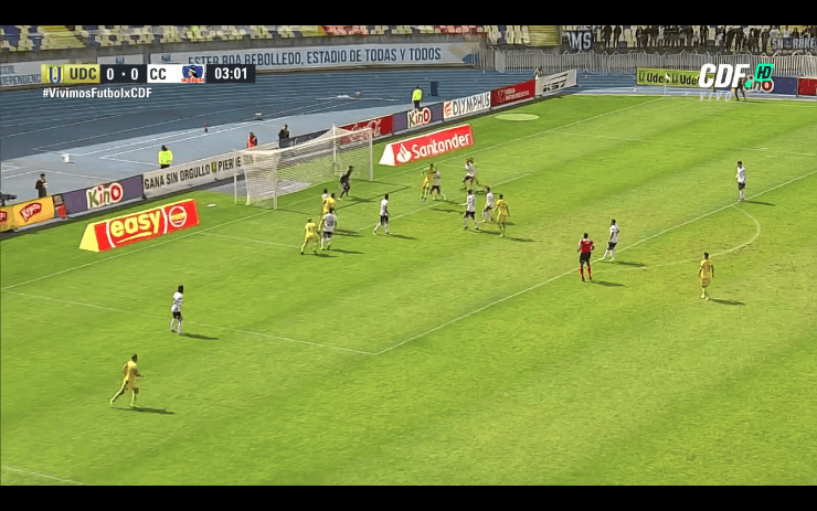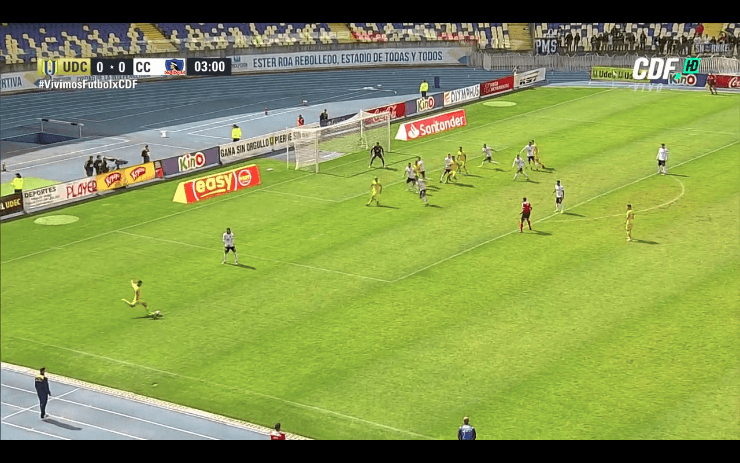 A los tres minutos, el ex Universidad de Chile, Patricio Rubio, saltó más alto que los defensas colocolinos y superó el vuelo de Brayan cortés con un certero cabezazo, tras un buen centro de Bryan Rabello.