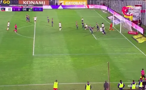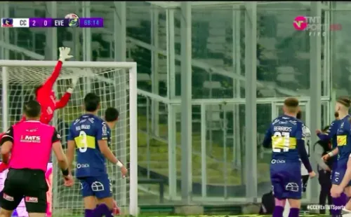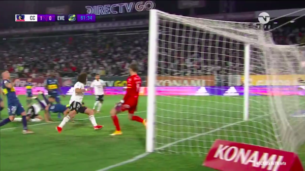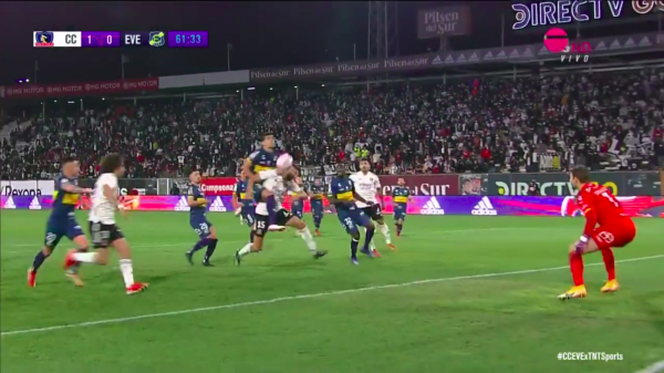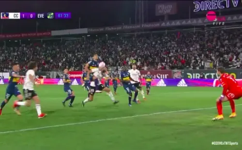Gol del Peluca Falcón: el 1-0 parcial de Colo Colo contra Everton. (Foto: captura TNT Sports)