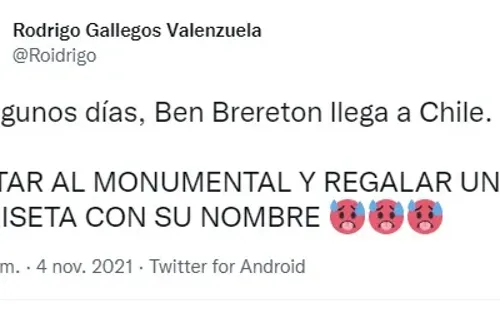 “Venga a ganar la Libertadores Ben Brereton”, escribió un emocionado seguidor albo en Twitter, mientras otros le profesaron abiertamente su amor al delantero.