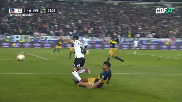 Fue una jugada fortuita en la que el lateral ruletero concedió un tiro de esquina a los colocolinos, luego de barrerse para evitar el desborde de Ronald de la Fuente.