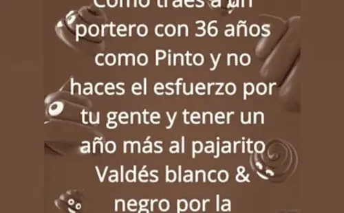 “Cómo traes a un portero de 36 años como Pinto y no haces el esfuerzo por tu gente para tener un año más al Pajarito Valdés, Blanco y Negro por la rechucha”, fue el claro mensaje de un hincha del que hizo eco el mediocampista. Más claro echarle agua.