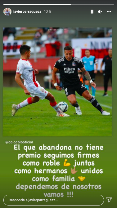 El delantero, que fue suplente ante Curicó Unido, utilizó su cuenta de Instagram para hablar tras el partido. El Búfalo no se hizo problemas y le hizo un fuerte llamado a los hinchas albos para lo que queda de torneo. “El que abandona no tiene premio. Seguimos firmes como roble“.