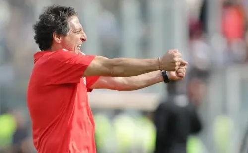 Con el tanto de Julio Barroso, el DT albo se volvió loco: saltó, se dio un abrazo estilo NBA con Carlo Villanueva e hizo callar con un gesto a los que lo putearon en todos los colores durante largos pasajes.