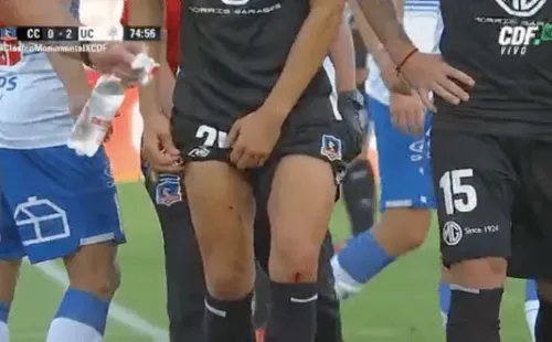 Nicolás Blandi fue el principal damnificado por los fuegos artificiales lanzados por los hinchas de Colo Colo hacia la cancha del Estadio Monumental.