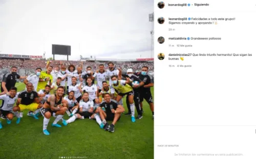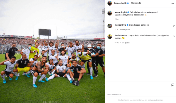 A través de su cuenta de Instagram, Leo Gil tuvo un emotivo mensaje para sus compañeros y los hinchas. Con una foto junto al resto del plantel, el Colorado celebró la victoria. ¡¡Felicidades a todo este grupo!! Sigamos creyendo y apoyando”, lanzó.