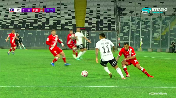 El volante fue el que comenzó a urdir la jugada que terminó con un golazo de gran fractura. Abrió para el sector derecho donde encontró a Marcos Bolados, quien enganchó y habilitó al Colo, quien en la entrada del área sacó un hermoso y preciso remate para anotar el 2-0.