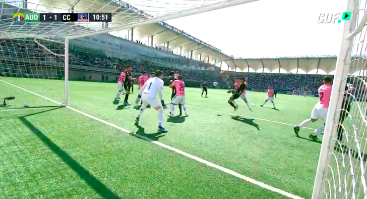 Desde un tiro de esquina, el defensor albo se adelantó a todos y con una desarmada volea poner el 1-1 en el marcador.