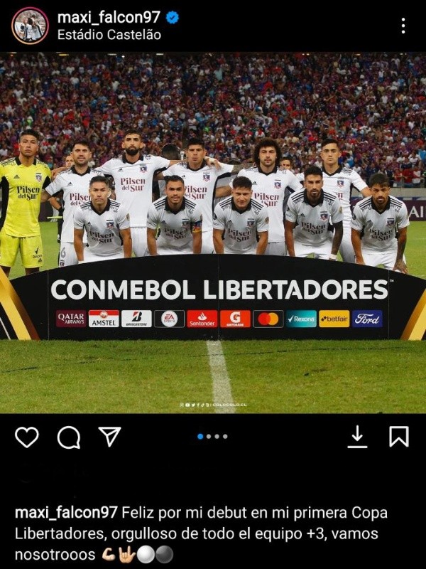 Por su parte, Maximiliano Falcón se mostró “feliz por el debut en mi primera Copa Libertadores, orgulloso de todo el equipo. +3, vamos nosotros”.