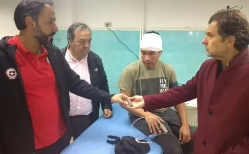 El gráfico resultó ser Carlos Succo, el fotógrafo oficial de Colo Colo. Al profesional le tuvieron que poner cinco puntos para cerrar la herida.