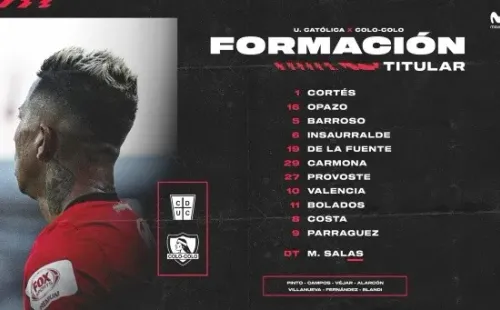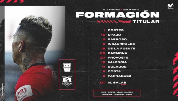 Colo Colo y Universidad Católica confirmaron sus formaciones para el clásico válido por la primera semifinal de la Copa Chile en el estadio Germán Becker de Temuco.