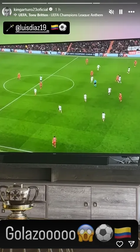 Arturo Vidal quedó en llamas con la actuación de Luis Díaz, figura de Colombia, país con el que tiene un fuerte vínculo gracias a su pareja. “¡Golazo!”, celebró, acompañándolo de emoticones de varitas en alusión al 7 del Liverpool, que se matriculó con un hat-trick en el 4 a 0.