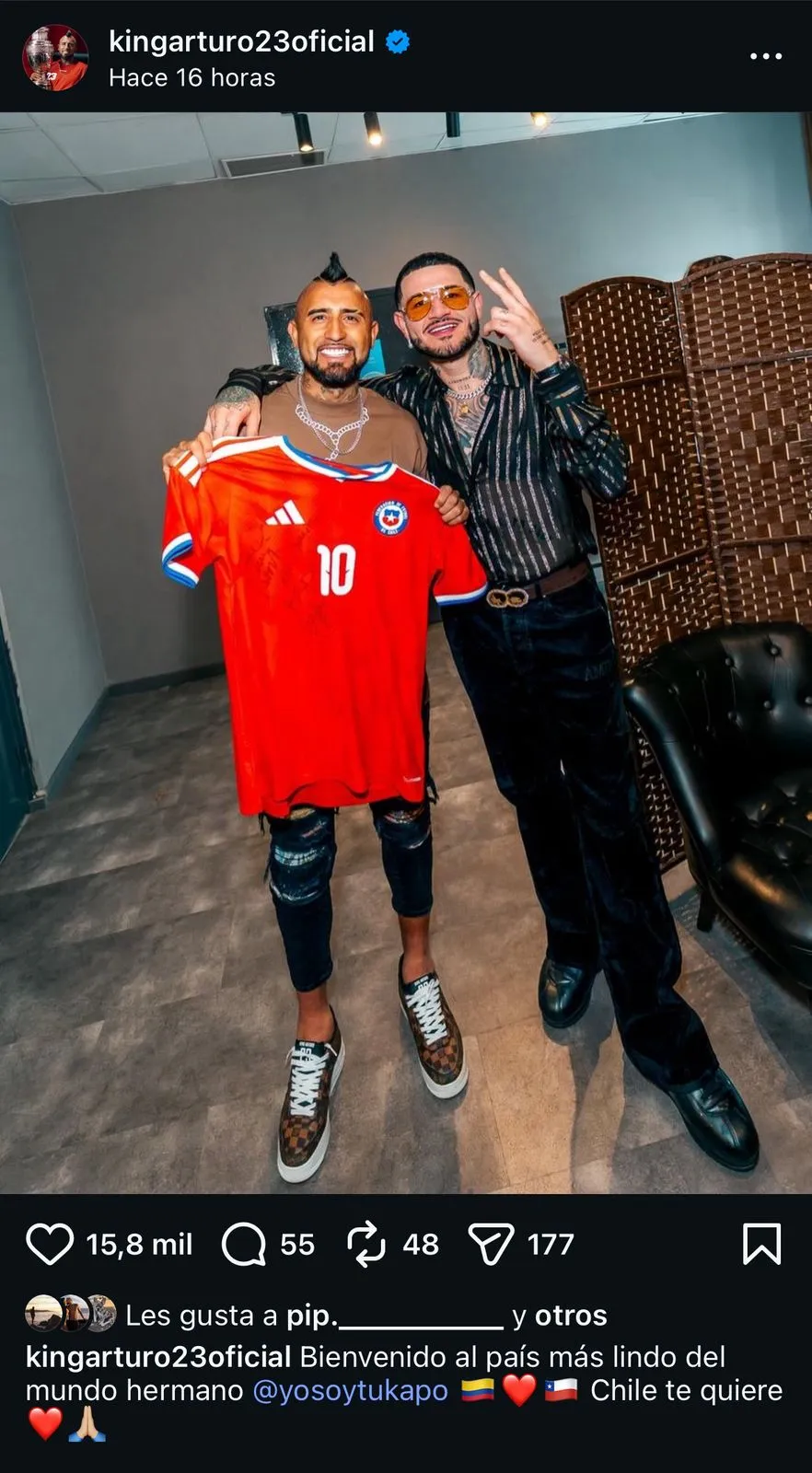 “Bienvenido al país más lindo del mundo hermano Kapo; Chile te quiere”, escribió Vidal en una dedicatoria.