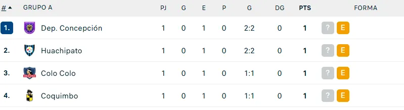 Tabla de posiciones: empate de Colo Colo y Coquimbo deja el Grupo A más apretado que gas de visita