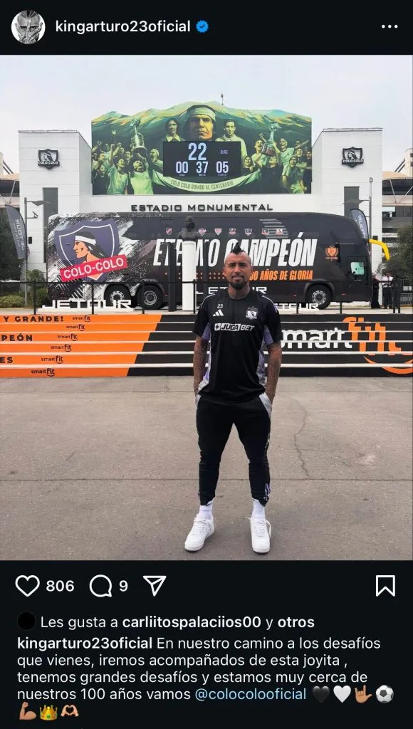 Fue en las redes sociales de Arturo Vidal donde mostró una fotografía del nuevo bus que acompañará a Colo Colo en el año del centenario, con una gran alegría para el King.