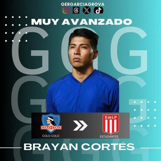 Según detalla el periodista Germán García Grova, de TyC Sports y Radio La Red, “Brayan Cortés está muy cerca de ser refuerzo de Estudiantes de La Plata. Se ultiman detalles de la compra de la ficha del arquero de Colo colo en poco más de US$1 millones. Contrato por tres años”.