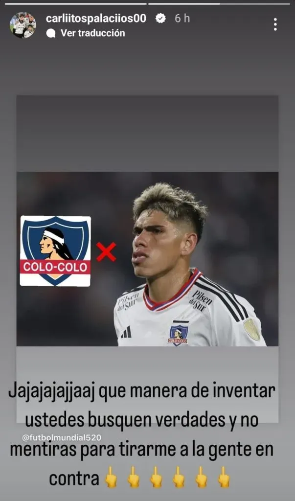 La sensación negativa de Carlos Palacios ante los rumores de una petición a Colo Colo para salir no quedó guardada. El jugador difundió el disgusto en sus redes sociales y probablemente hizo crecer una bola de nieve, visto el alcance de la cuenta de Instagram que lanzó esa información.