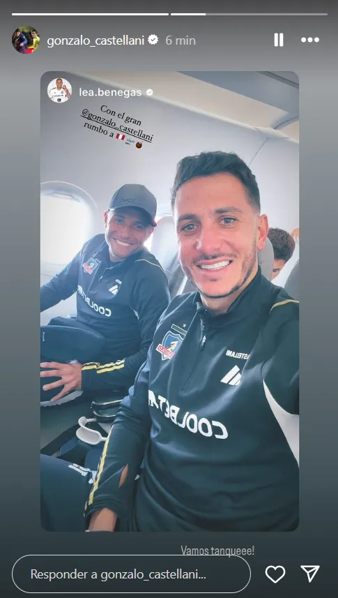 Uno fue el argentino Gonzalo Castellani, quien iba a ser titular en el duelo del cuadro colocolino frente a Cobresal en el estadio El Cobre, enclavado en El Salvador. El experimentado mediocampista argentino compartió un par de historias en su Instagram a poco de emprender el vuelo rumbo a la capital peruana. En una se ve la ventana del avión.
