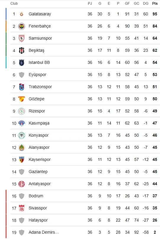 Mala temporada para un club que ha logrado hacerse un nombre en Turquía, siendo el 4° equipo más galardonado del país con 7 títulos de liga, solamente superado por los tres grandes, Galatasaray (25), Fenerbahce (19) y Besiktas (16).