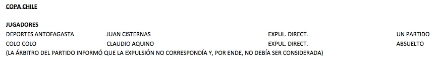 Pese a todo lo anterior, quien finalmente debía determinar si es que Aquino debía ser, o no, suspendido en Copa Chile era el Tribunal de Disciplina de la ANFP, quien tras evaluar el reporte arbitral y conocer la defensa de Colo Colo tomó una decisión.