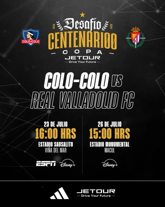 Tal como estaba anunciado, este miércoles 23 de julio será el partido amistoso entre Colo Colo vs. Real Valladolid, se realizará desde las 16:00 hrs, en el Estadio Sausalito de Viña del Mar, en el marco de los 100 años del Cacique.