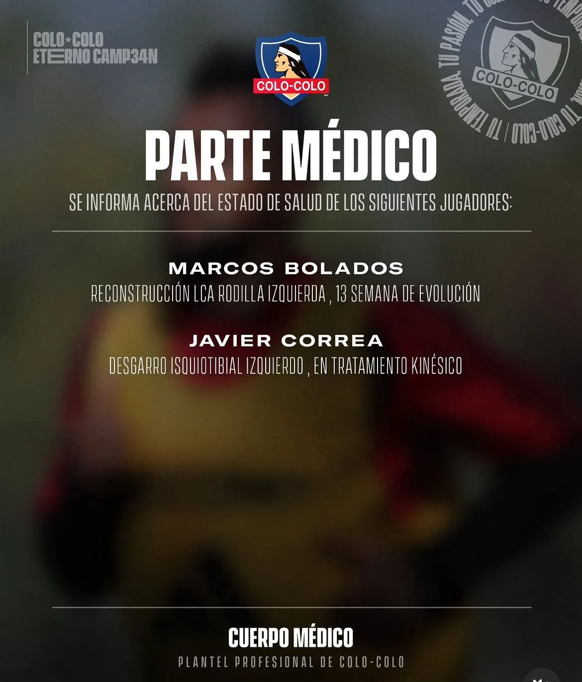 Colo Colo entregó el nuevo parte médico por los lesionados de su plantel, en donde aparece Marcos Bolados y Javier Correra como los protagonista del documento.