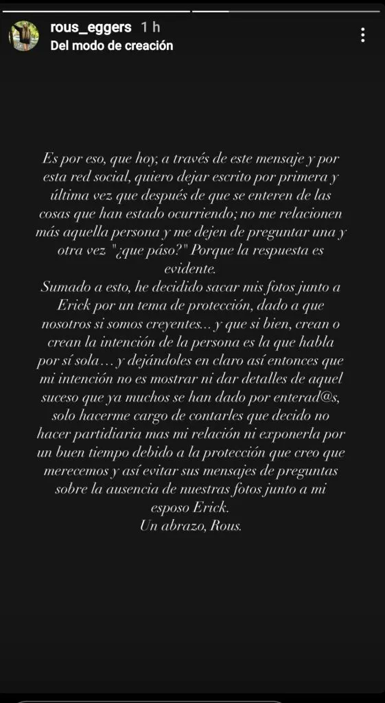 Para finalizar, la mujer cierra la publicación escribiendo que “he decidido sacar mis fotos junto a Erick por un tema de protección, dado a que nosotros sí somos creyentes”, y añade que “mi intención no es mostrar ni dar detalles de aquel suceso, ya muchos se han dado por enterados“.