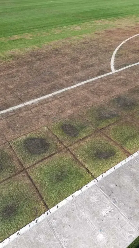 Donde peor se ve el asunto es el sector que da a la galería sur, donde se perciben zonas donde el césped prácticamente desapareció. En su remplazo sólo se ve tierra, algo que en el corto plazo sólo se solucionará ubicando parches de paste para tapar el área dañada.