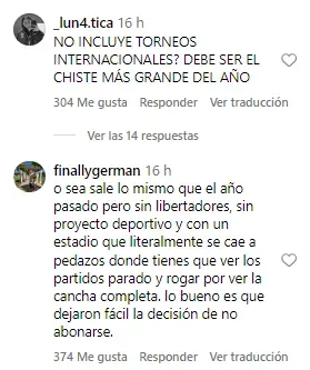 Los hinchas albos rápidamente demostraron su molestia en redes sociales por esta situación, dejando varios mensajes de protesta en Instagram y Twitter. No sólo apuntan a la falta de partidos, sino a que la experiencia estadio no es de las mejores en el Monumental.