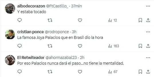 Hay una jugada que específicamente tiene a los más fanáticos indignados con la actitud de Carlos Palacios, quien nuevamente tuvo un partido internacional donde no pudo destacar de mitad de cancha hacia arriba.