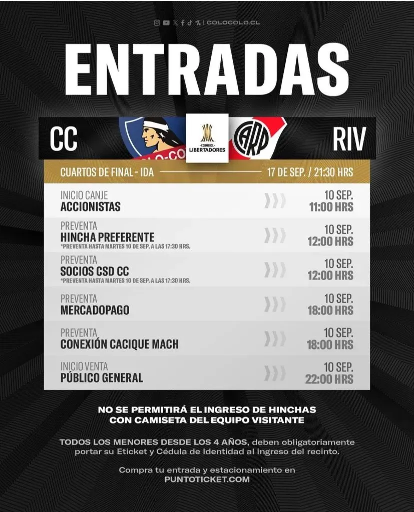 Colo Colo jugará el próximo martes 17 de septiembre contra River Plate, en los cuartos de final de Copa Libertadores. Un partido muy esperado por los colocolinos… aunque no tanto por su bolsillo.
