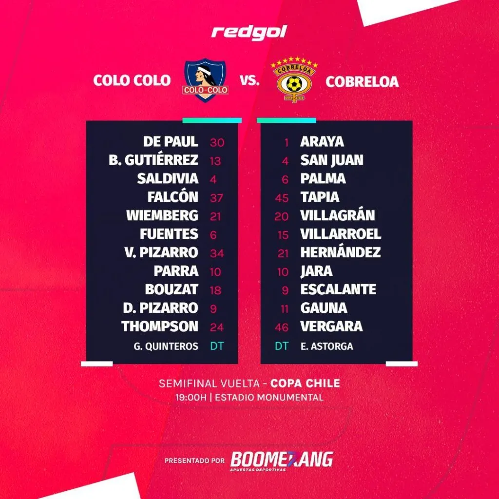 Triunfo por 6-0 contra Cobresal, victoria agónica por 2-1 a Universidad Católica; y ahora Colo Colo quiere repetir cuando reciba a Cobreloa. Esta vez por las semifinales vuelta de Copa Chile.