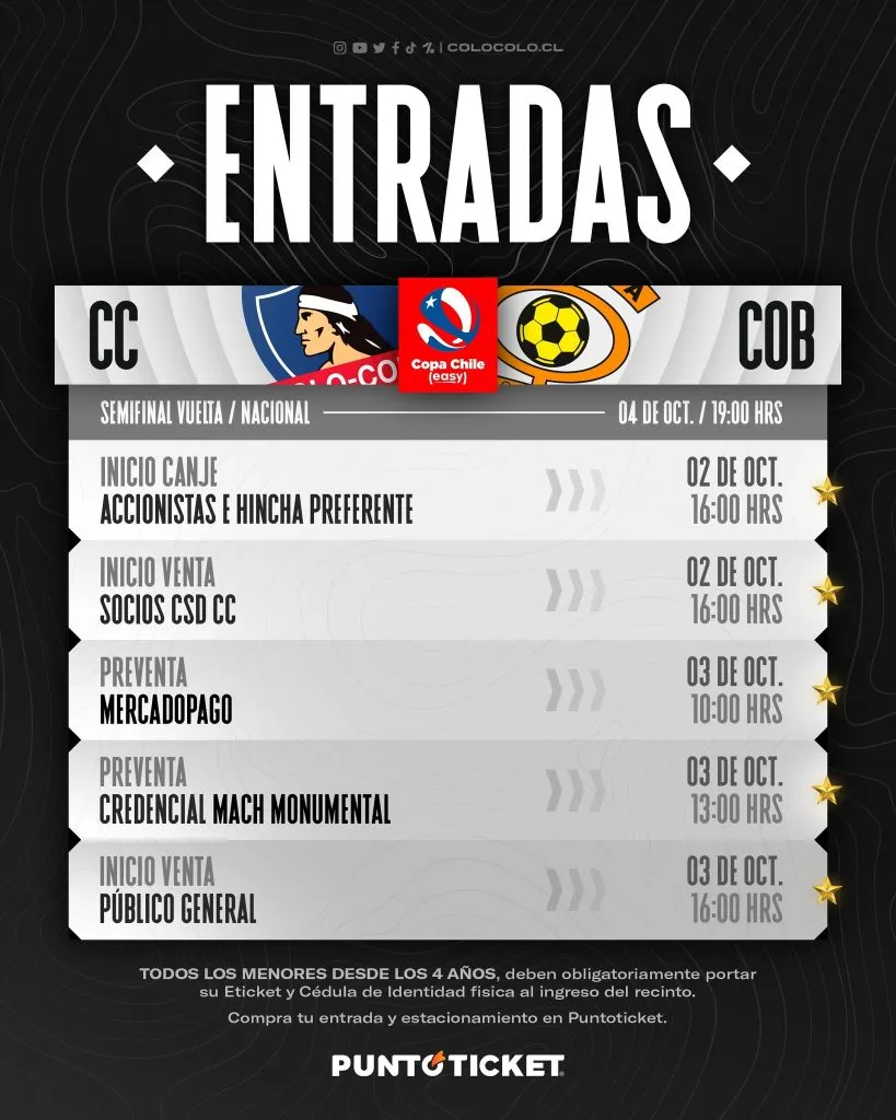 El Cacique informó que la venta de entradas iniciaba este 2 de octubre desde las 16:00 horas (canje accionistas e hinchas preferentes), mismo horario para la venta de socios del Club Social y Deportivo.
