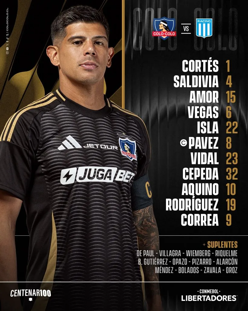 La formación confirmada de Colo Colo para recibir a Racing por Copa Libertadores