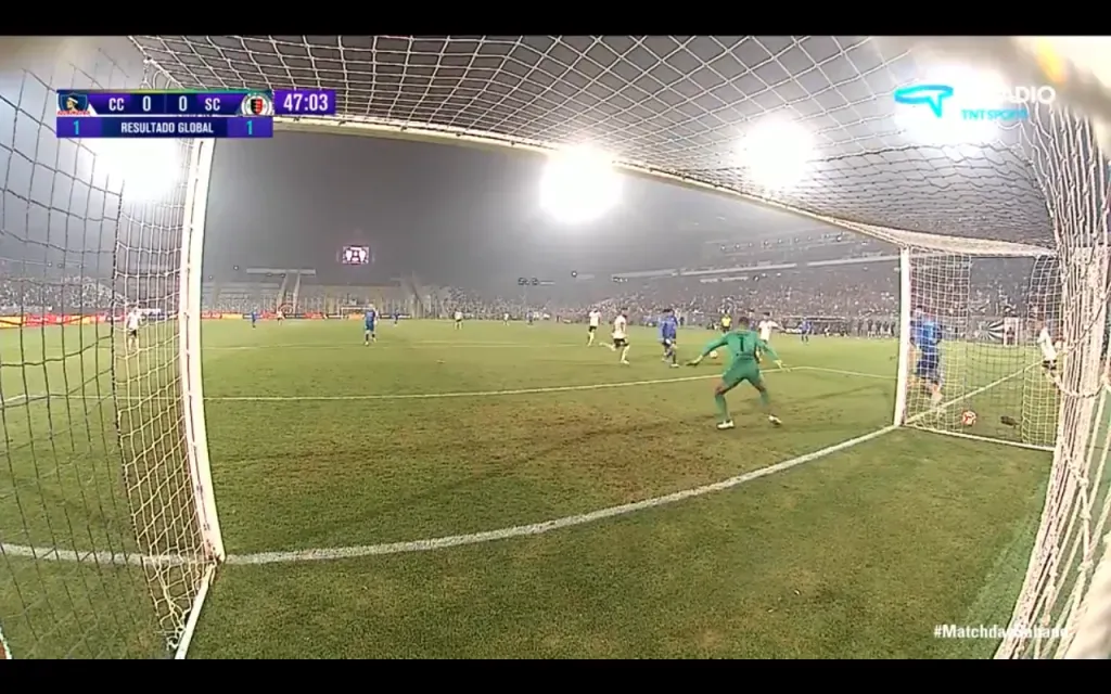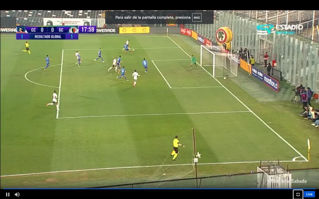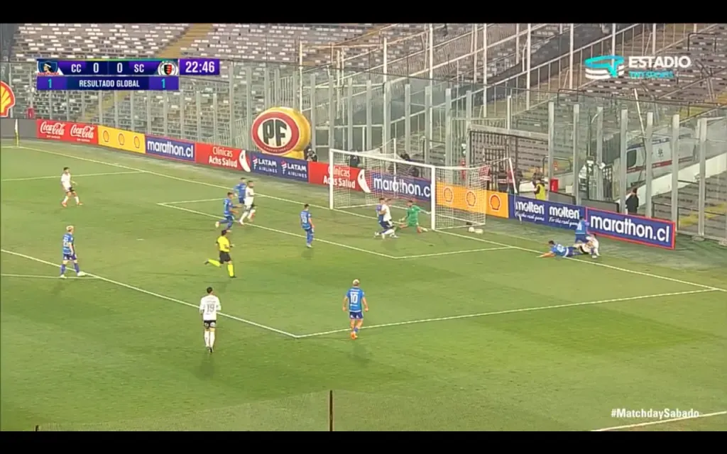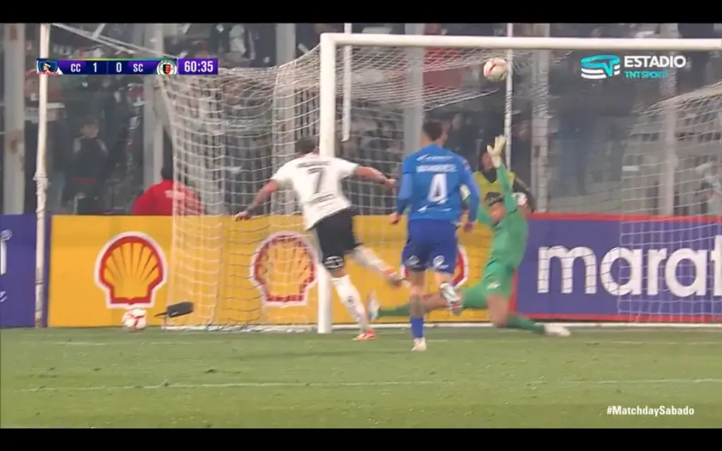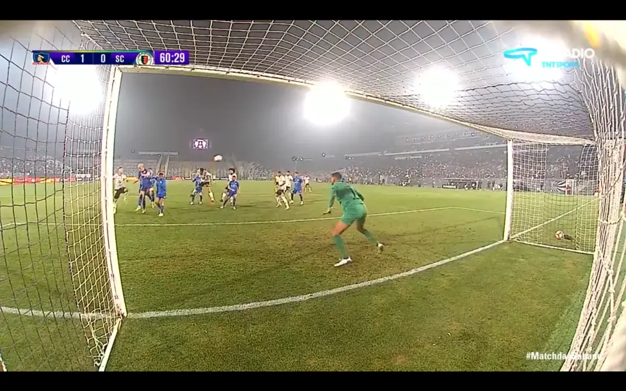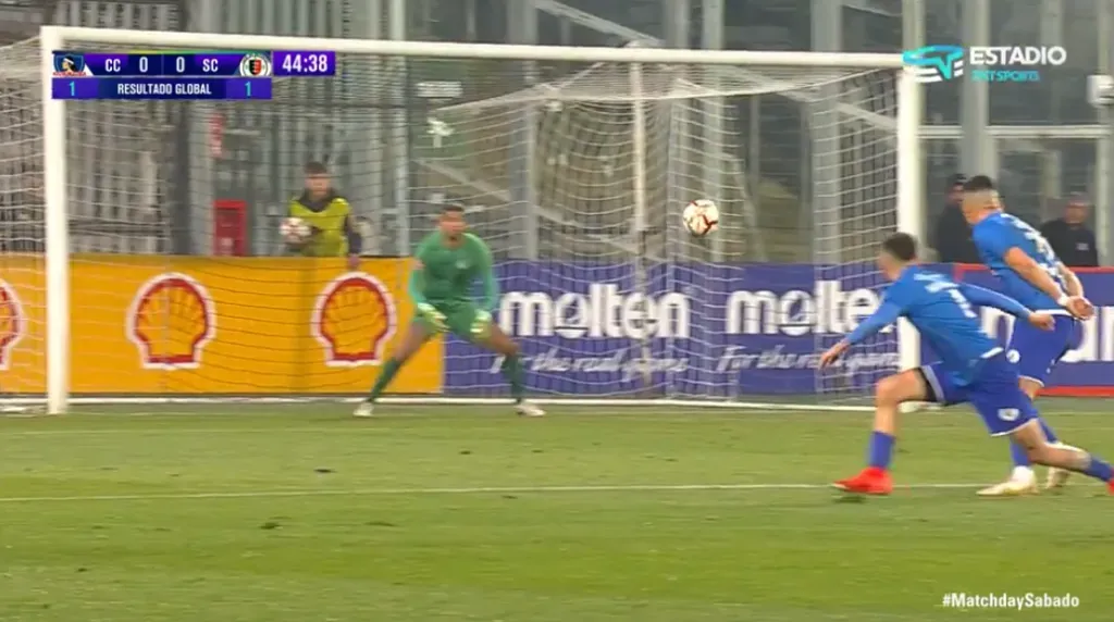 El tanto se inició en un tiro de esquina servido por Arturo Vidal y cabeceado por Vicente Pizarro. El portero de Santa Cruz la despejó, pero le quedó a Carlos Palacios, sin un defensa que lo bloqueara. La Joya la mandó al fondo de las redes.