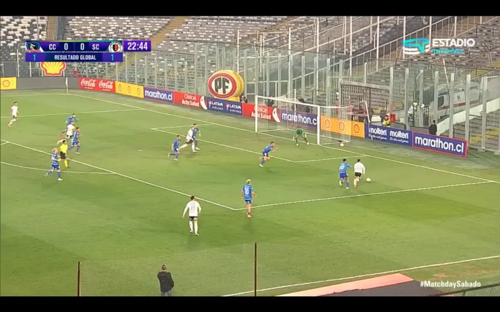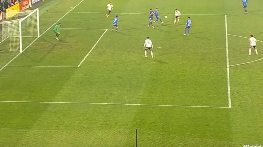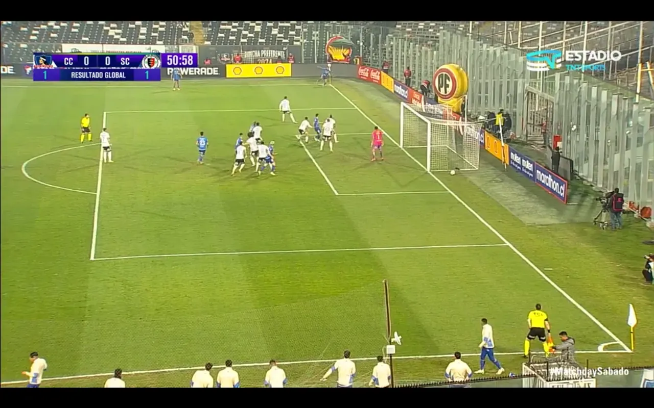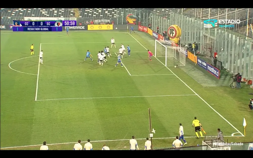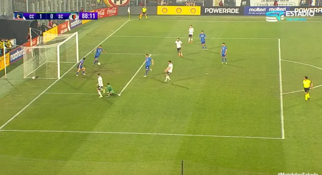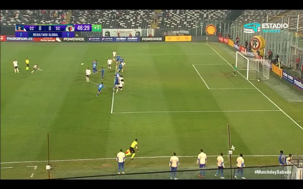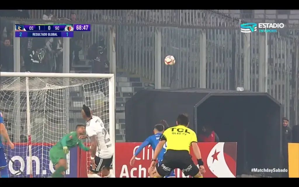 El tanto se inició en un tiro de esquina servido por Arturo Vidal y cabeceado por Vicente Pizarro. El portero de Santa Cruz la despejó, pero le quedó a Carlos Palacios, sin un defensa que lo bloqueara. La Joya la mandó al fondo de las redes.