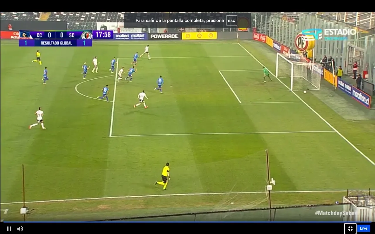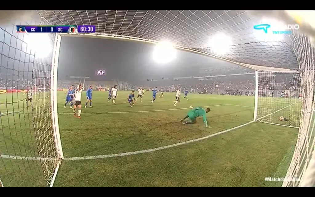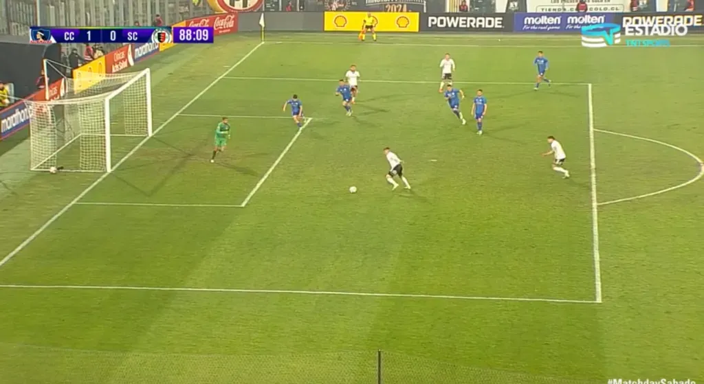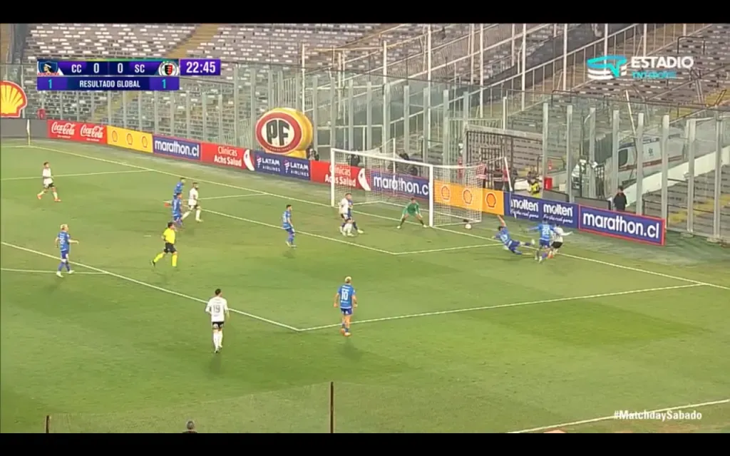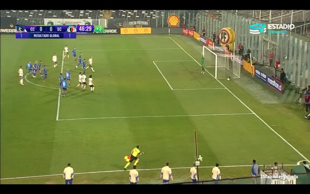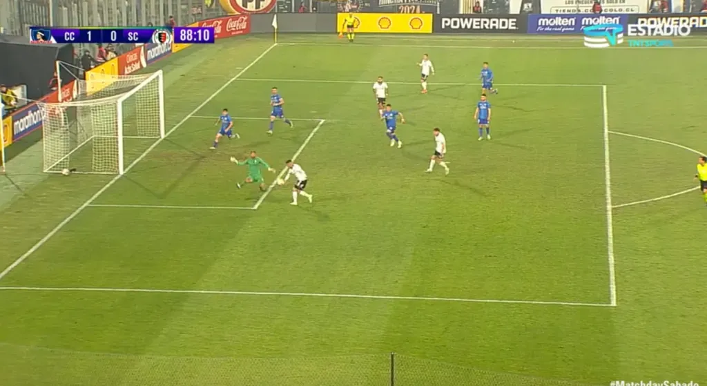 El tanto se inició en un tiro de esquina servido por Arturo Vidal y cabeceado por Vicente Pizarro. El portero de Santa Cruz la despejó, pero le quedó a Carlos Palacios, sin un defensa que lo bloqueara. La Joya la mandó al fondo de las redes.