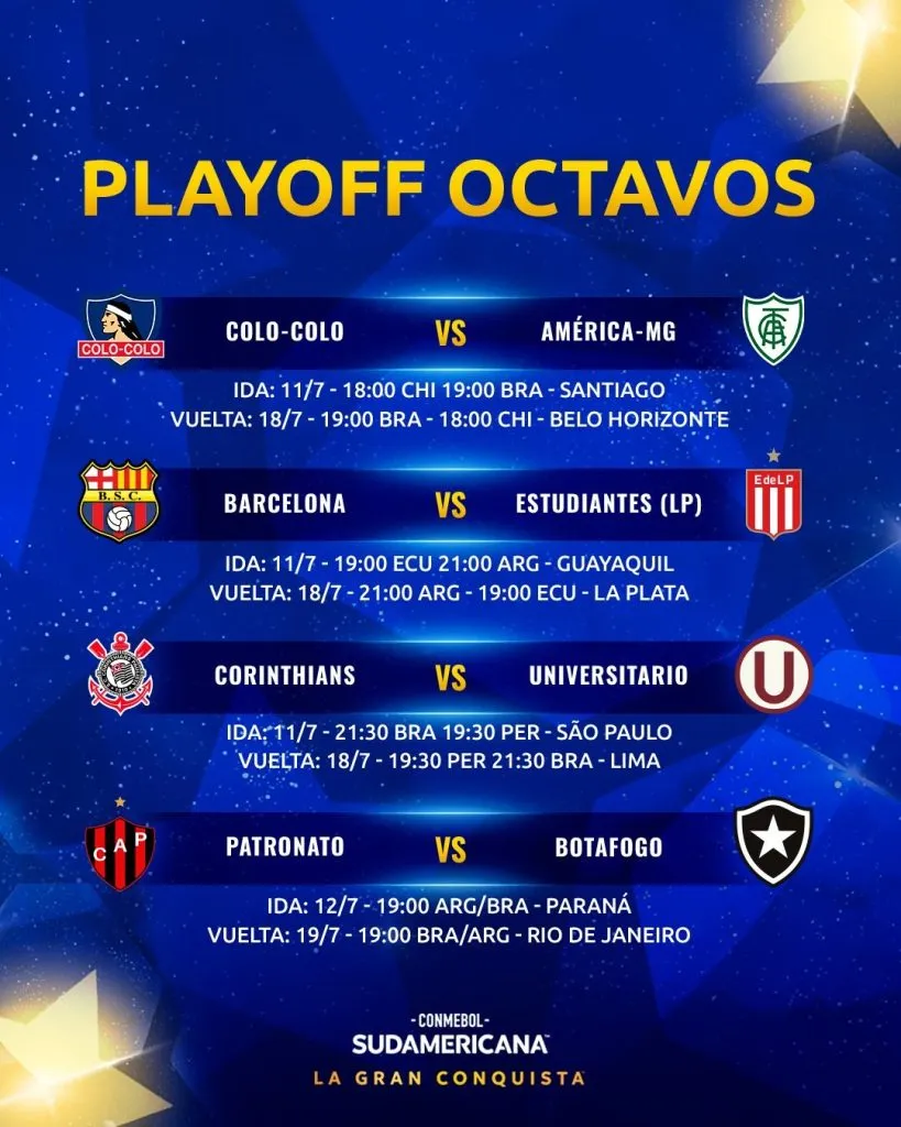 Colo Colo llega a la fase tras quedar eliminado de la Copa Libertadores como tercero de grupo. Enfrentará al América Mineiro de Brasil el martes 11 de julio desde las 19:00 horas en el estadio Monumental (por la ida).