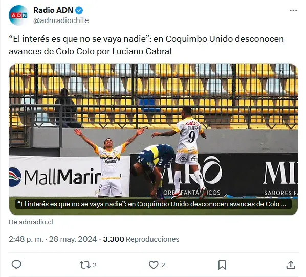 No son pocas las informaciones que afirman la opción que Luciano Cabral, una de las figuras del Campeonato Nacional, continúe su carrera en Colo Colo para el segundo semestre. Sin embargo, desde Coquimbo Unido son categóricos al respecto.