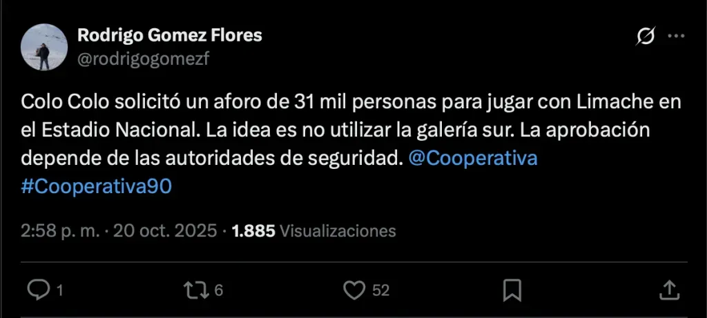 La razón por la cual Colo Colo pidió este aforo, agrega el reportero radial, es para “no ocupar la galería sur” del Estadio Nacional, un recinto al que vuelven tras la Supercopa 2024, donde sus hinchas provocaron destrozos durante el lance con Huachipato.
